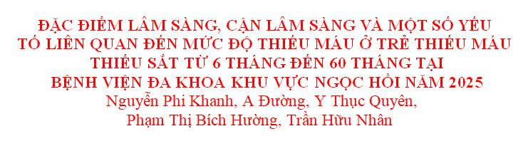 ĐẶC ĐIỂM LÂM SÀNG, CẬN LÂM SÀNG VÀ MỘT SỐ YẾU TỐ LIÊN QUAN ĐẾN MỨC ĐỘ THIẾU MÁU Ở TRẺ THIẾU MÁU THIẾU SẮT TỪ 6 THÁNG ĐẾN 60 THÁNG TẠI BỆNH VIỆN ĐA KHOA KHU VỰC NGỌC HỒI NĂM 2025
