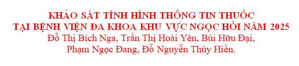 Thứ sáu, 05/12/2025 | 14:26 A- A A+ | KHẢO SÁT TÌNH HÌNH THÔNG TIN THUỐC TẠI BỆNH VIỆN ĐA KHOA KHU VỰC NGỌC HỒI NĂM 2025 Bai_bao_dang_tin_Bv__0efae.docx Chia sẻ Đọc bài Lưu KHẢO SÁT TÌNH HÌNH THÔNG TIN THUỐC TẠI BỆNH VIỆN ĐA KHOA KHU VỰC NGỌC HỒI NĂM 2025 Tập tin đính kèm Trình duyệt không hỗ trợ iframe. Tổng số điểm của bài viết là: 0 trong 0 đánh giá Click để đánh giá bài viết