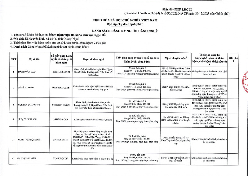 | Tiêu đề văn bản | Danh sách đăng ký người hành nghề tại Bệnh viện Đa khoa khu vực Ngọc Hồi | ||
