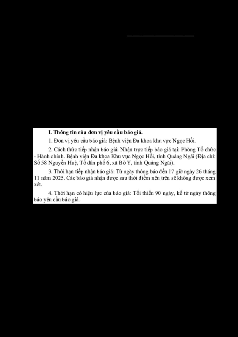 | Tiêu đề văn bản | Thông báo yêu cầu báo giá: Mua, lắp đặt thiết bị mạng tại khối nhà 3 tầng của bệnh viện Đa khoa khu vực Ngọc Hồi | ||