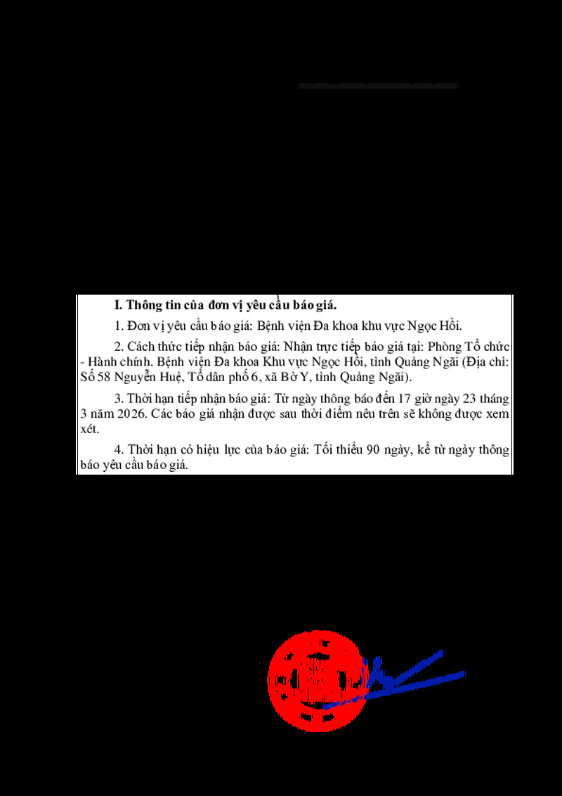 | 1 | Thông báo yêu cầu báo giá: Mua máy Photocopy phục vụ phô tô các văn bản, tài liệu chuyên môn tại Bệnh viện Đa khoa khu vực Ngọc Hồi | 226/TB-BVKVNH | |||