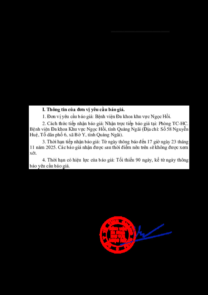 | Tiêu đề văn bản | Thông báo yêu cầu báo giá: Thuê dịch vụ lưu trữ hồ sơ bệnh án điện tử (EMR) trên hạ tầng điện toán đám mây (cloud) của Bệnh viện Đa khoa khu vực Ngọc Hồi | ||